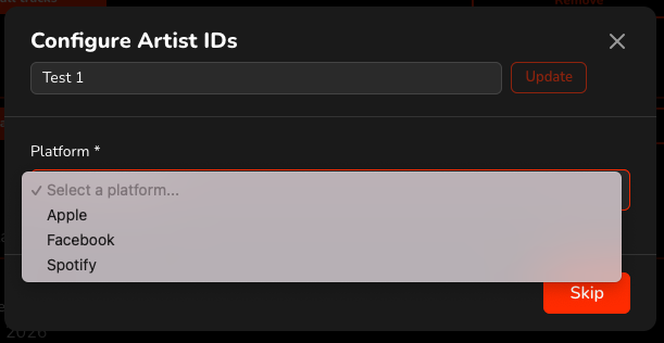 If you are adding an artist for the first time, a pop-up window will appear. First, select the DSP, then choose the correct artist from the automatically generated list.
